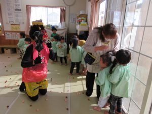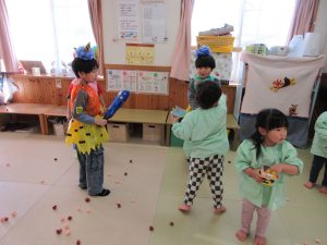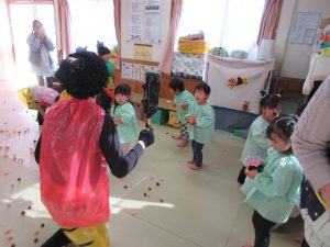 お誕生会の後はお部屋に戻って豆まき!