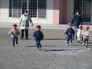 新年、最初の戸外遊びでは「よーいどん!」のかけっこをしました✨