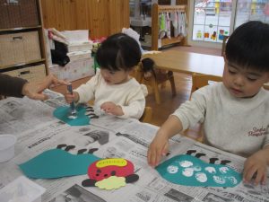 保育者は難しいところを少しだけお手伝いしましたが、ほとんど子どもたちが一人で作り上げることができました✨