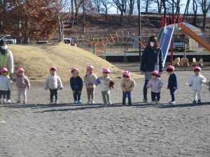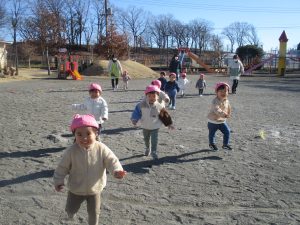 新年、最初の戸外遊びでは「よーいどん!」のかけっこをしました✨