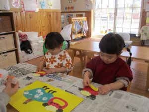 保育者は難しいところを少しだけお手伝いしましたが、ほとんど子どもたちが一人で作り上げることができました✨