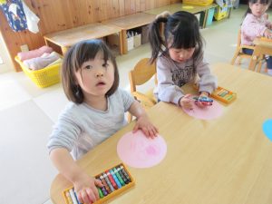 クレヨンで自由に模様を描き、くるくる凧を作りました!