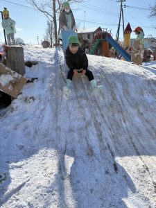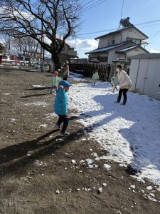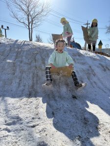 築山を使ってそり遊びをしたり、先生たちと本気で雪合戦をしたり…!
