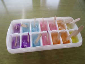 絵の具を混ぜた色水を凍らせて、氷でお絵描きをしました🍧