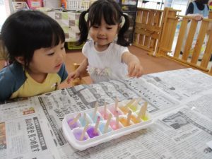 お月見製作・色付き氷でお絵描き✎(つぼみ組)