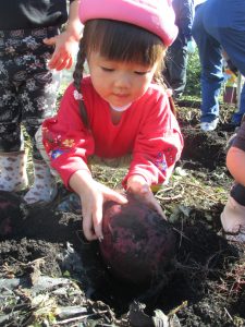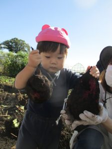 畑に着くと、「おいもだー!」と嬉しそうな子どもたち!!