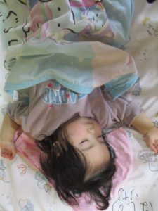 たーくさん遊んで、給食を食べたら自然と眠くなってきて。。。