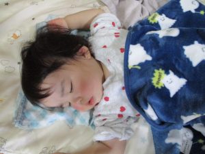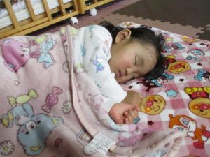 たーくさん遊んで、給食を食べたら自然と眠くなってきて。。。