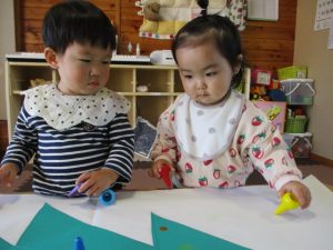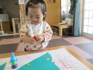 使ったクレヨンを積み重ねて遊ぶ姿も・・・♡