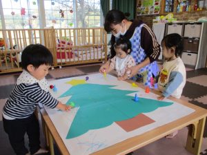 みんなで作ったクリスマスツリー🎄やきいも(ふたば組)
