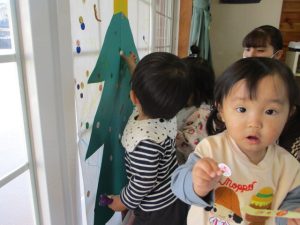 大きなクリスマスツリーにみんなで飾りつけをしました💛