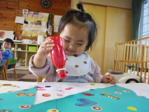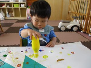 自分でシールが剥がせると「わー♥(みてみてー)」と得意顔で見せに来てくれます!!