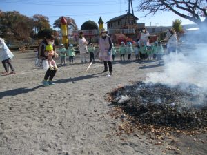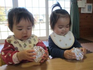 先生がさつまいもを包む様子を、じーと見つめていた子どもたち。