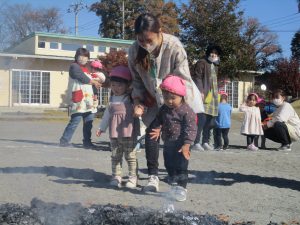 アルミホイルで包んだお芋を焚火の中に投げ入れる体験をしました!!!