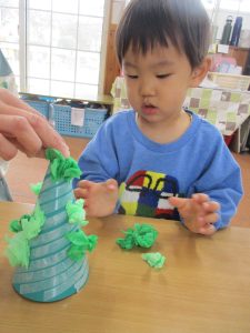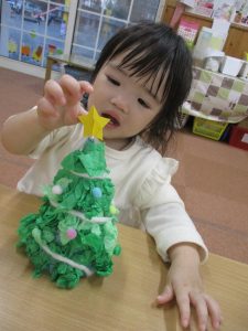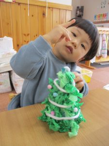 つぼみ組では、クリスマスツリーの製作を行いました!
