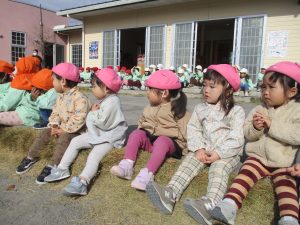 出来上がったお餅を見せると、興味津々な子どもたちでした😉