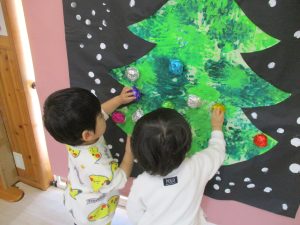 ひとり2個ずつ、ツリーに飾りつけをしました!!!