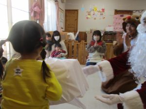 サンタさんやトナカイさんとハイタッチをして嬉しそうな子どもたちでした🎵