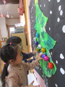 ひとり2個ずつ、ツリーに飾りつけをしました!!!