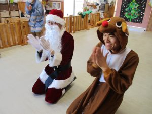 サンタさんやトナカイさんとハイタッチをして嬉しそうな子どもたちでした🎵