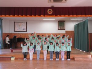 合唱ではピアノの音や友だちの声をよく聴きながら、かわいらしく明るい声で歌う姿が見られています♪