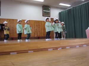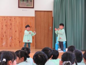 ふたば組~さくら組のみんなが見に来てくれるということで、楽しみと緊張が半々な様子の子どもたち☺