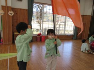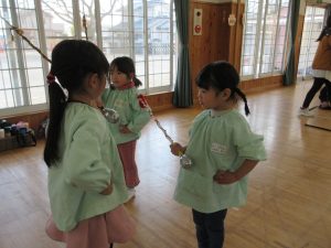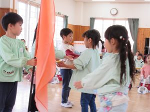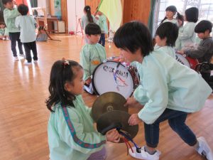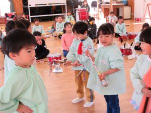 さくら組のお友達から「頑張ってください!」と指揮棒やバチ・ガードを渡され、元気よく「ありがとうございます!」と代表の子が受け取ることができました☺