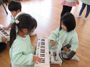 「どうだった?」と問い掛けると「楽しかった」「シャーン!って音がしたよ」「ガード重かった・・・」など様々な感想が返ってきたと同時にやりたい楽器や気になる楽器を見つけていた子ども達でした🌻