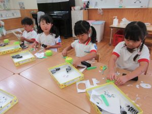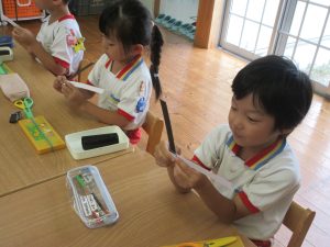 2本の画用紙を折り重ねていくという作業を園では初めて行ったのですが、保育者が見本を見せて最初だけ一緒にやるとすぐに折り方を覚えられる子がたくさんいてびっくりしました✨
