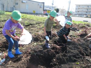 土の中につるが残っていると、「まだここにありそう!」と探す子もいました☆彡