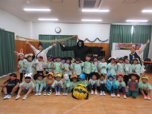 すみれさん、ひまわりさんと参加しました。みんな可愛い仮装をしてきてくれましたね💕