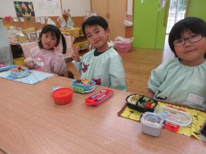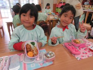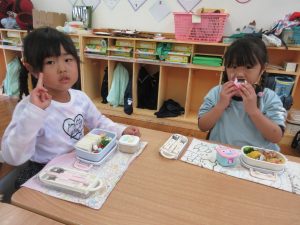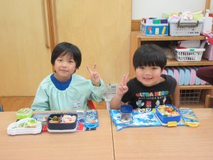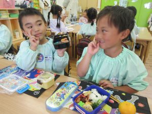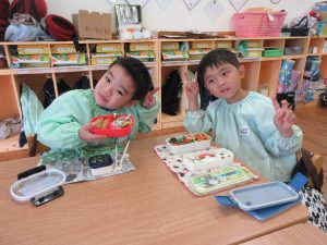 同じおかずやフルーツが入っているのを喜んだり