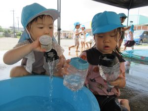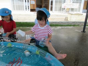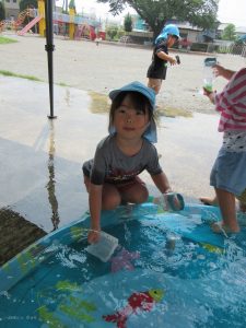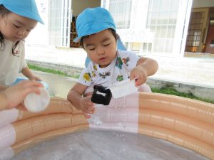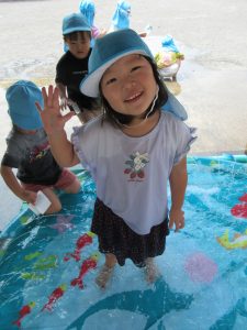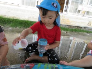 初めは水遊びにちょっぴり不安を感じる様子もありましたが