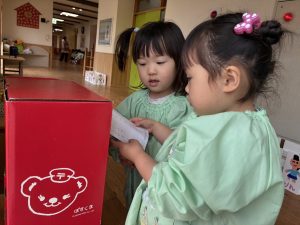 さくら組のお部屋前にあるポストに行き、お手紙を投函しました📮