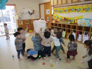 宝探しゲームでは、保育者の「もういいよ~」の声で元気いっぱい走り出していきました!!!