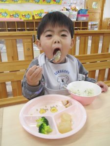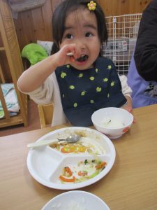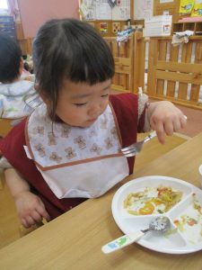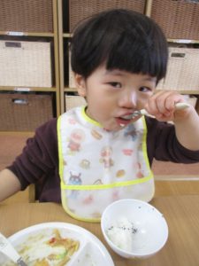 スプーン・フォークも上手に使って食べることができていますね🎵