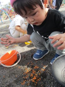 金木犀のお花を集めてみたり、落ち葉を使ってお料理を作ったり、たくさんの自然に触れることができました!!