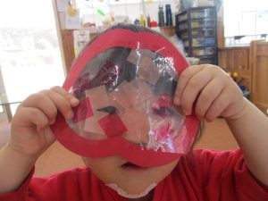 透けて見えるのが面白かったようで、作り終わるとみんなお顔をくっつけて覗いていました♡