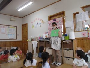 大きな声でお返事をしたり、保育者を真似しながら一生懸命ダンスを踊ったりと、自分なりに表現しようとする姿がみられました💕