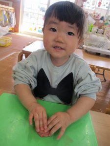 「こねこね」「ぎゅっぎゅっ」と言いながら粘土の感触を味わう姿が見られました💕