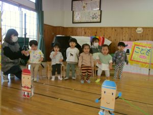 大きな声でお返事をしたり、保育者を真似しながら一生懸命ダンスを踊ったりと、自分なりに表現しようとする姿がみられました💕