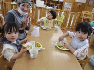 みんなで食べるとおいしいいね💕たくさん食べて大きくなろうね✨