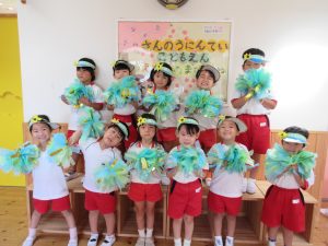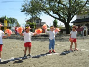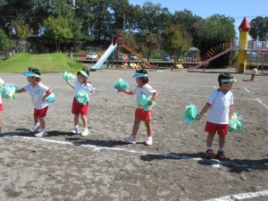 お友達と立つ場所を見つけたり、曲に合わせて元気に声を出したりと友達と力を合わせて頑張っています☺