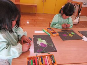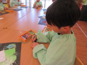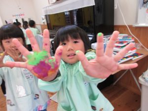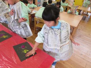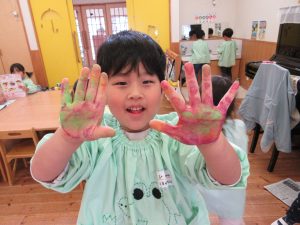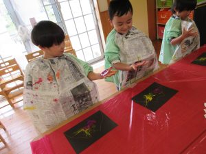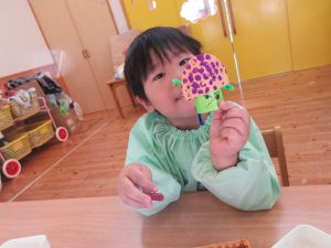 楽しそうに絵の具で模様をつけていたひまわりさん(*^_^*)