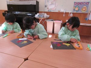 ハロウィンパーティーに向けて、みんなでコウモリのバッグを作りました!