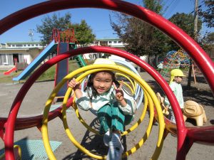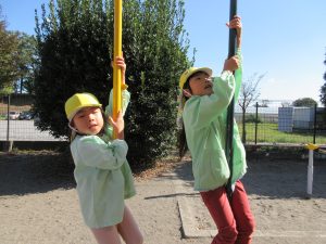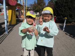 みんなが大好きなお外あそび❤ドングリを集めたり、のぼり棒や大型遊具に挑戦したりと楽しく遊んでいます☆彡