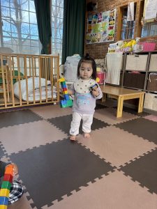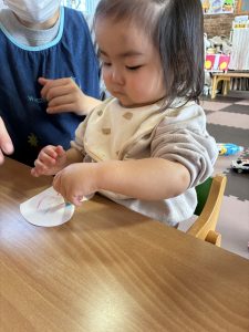 言葉も保育者の真似をして、会話を楽しむ姿も増えてきました。