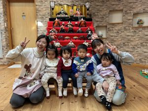 「ひな祭り」の歌を保育者と一緒に歌いながら雰囲気を味わい、貴重な体験ができました。