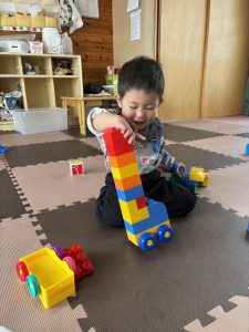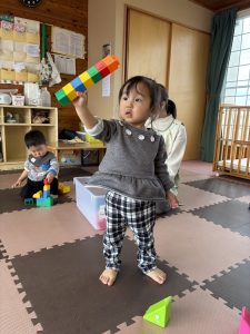 縦に積み上げたり、横に並べたりすることを楽しんでいました。