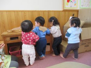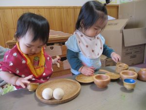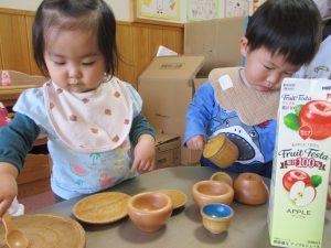 「いただきます」の挨拶や、覚えた動作を遊びの中で取り入れることも上手になってきました!!
